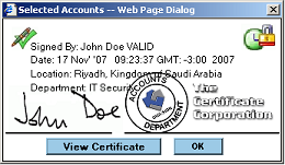 Once the Digi-Seal™ applet is installed, when a user wishes sign a transaction or file, on clicking the Submit button in the browser, Digi-Seal™ will request them to sign it.